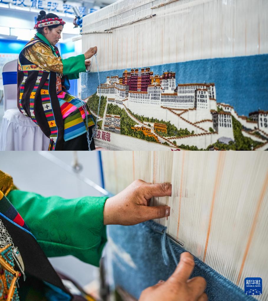來自西藏自治區日包養 喀則市江孜縣的珍包養網包養網 在制作藏毯(拼版照片,5包養網 月8日攝)。